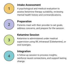 We clarify goals, identify relational patterns, and establish a safe therapeutic foundation.Ketamine Sessions